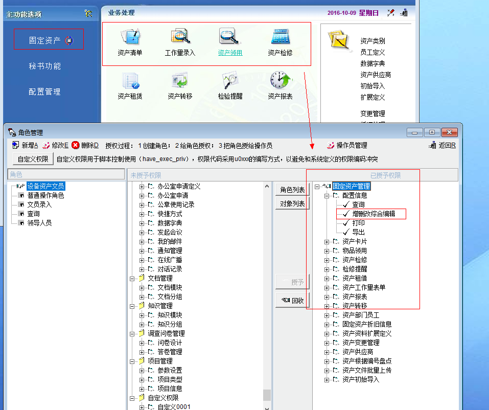 特别是新人使用.或者久了.需要对某个版块的权限进行调整. 会遇到.不知道在应该调哪一个的问题. 1.需要把权限与主页的排版相对应. 比如: 主页: 固定资产 => 里面有 资产清单 工作量录入 资产领用 .......等等 那权限列表.也最好是对应的 固定资产 => 资产清单 工作量录入 资产领用 .......等等 而我们现在的权限表是 固定资产资产管理 => 配置信息 资产卡片 物品领用 ..... 这样的.. 名字和排版就不一样. 久了忘记了又要一个一个去试.非常不方便.. 2. 我觉得应该把权限分得更细分一点.. 我觉得特别是 (新建和编辑) 与 (删除) 这两套必须要分开授权 而不是一个权限 [增减改综合编辑] 因为.有些员工.素质有问题.特别是有删除权限. 可能很多资料就被他悄悄删除了. 我觉得最好添加一个作废权限. 可以作废但是不能删除. 3.权限还不能同时多个进行授权或回收 因为有一个问题,特别是点回收的时候. 两边的列表要重新刷新一次.而且速度还挺慢. 如果需要设置比较多权限的时候,操作起来就特别不舒服 |