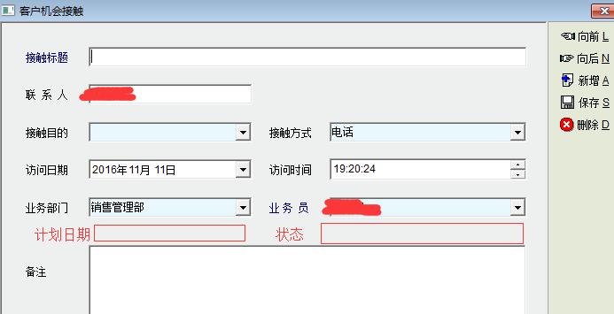 客户机会接触记录没有计划日期与接触状态内容,建议添加添加计划日期与接触状态这两项内容,像客户接触记录或客户线索接触记录一样。这样,既可以记录接触的内容,也可以制定接触计划,提醒员工及时跟进相关的客户机会。