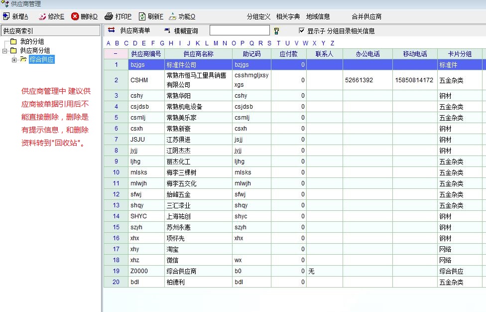 供应商管理中 建议供应商被单据引用后不能直接删除,删除是有提示信息,和删除资料转到"回收站"。