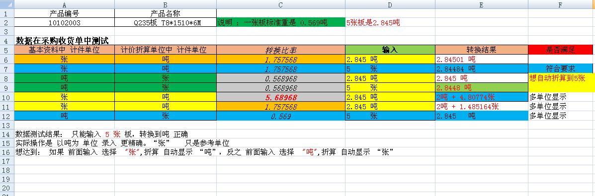 想达到: 如果 前面输入 选择 "张",折算 自动显示 “吨”,反之 前面输入 选择 "吨",折算 自动显示 “张”