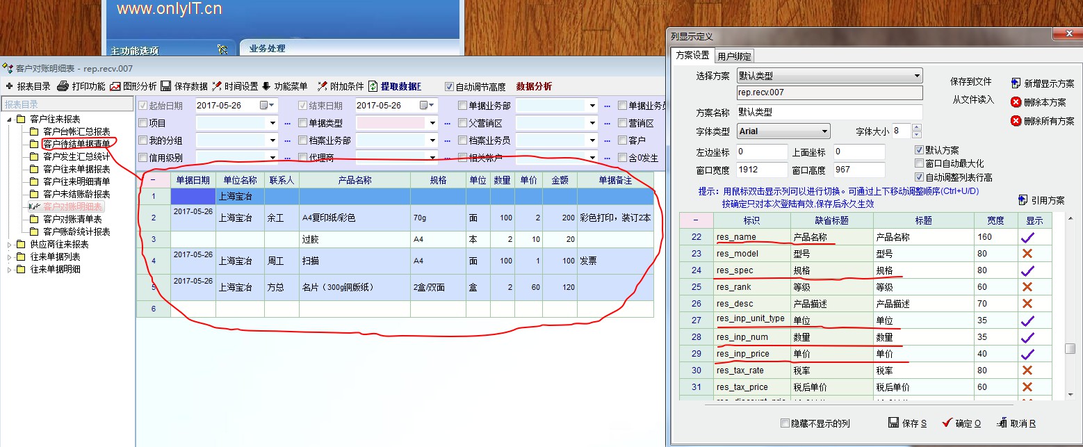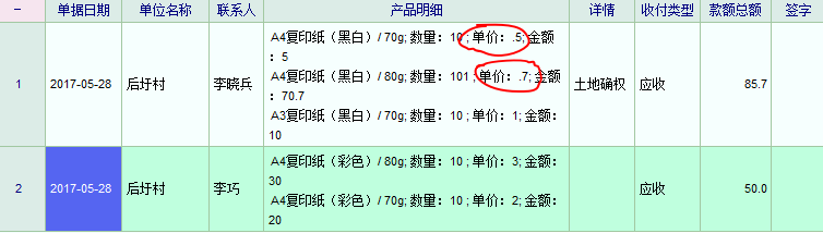 增加一个明细扩展字段djmx 然后把下面的脚本加到int show_row_ext() int i,id string sql,vr_note sql="select count(*) from ebs_vr_item where voucher_id=(select voucher_id from ebs_v where voucher_no='"+voucher_no+"')" db_run(sql) id=db_res(0) //msg(id) vr_note="" for(i=1;i<=id;i++) { sql="select b.res_name&'/ '&b.res_spec&'/ 数量:'&a.std_num&' / 单价:'&a.inp_price/100&'/ 金额:'&a.total_amount/100 from ebs_vr_item a,res b,ebs_v c where a.res_id=b.res_id" sql=sql+" and a.item_id="+i+" and a.voucher_id=c.voucher_id and c.voucher_no='"+voucher_no+"' and c.voucher_no<>''" db_run(sql) vr_note=vr_note+nl()+" "+db_res(0) } grid_set_v("MG","djmx",change_row_id,vr_note) |