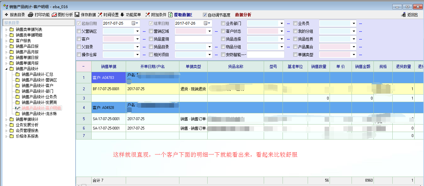 “销售产品统计-客户明细”对于需要统计销售额的话很方便,之前问过老师在“销售类单据明细”可以查不含税的销售金额,但是这个不像客户明细里面的直观,所以项请问下能否修改一下? 或者把“销售类单据明细-销售订单明细”的格式改成“销售产品统计-客户明细”那样的显示格式!显示格式改变而已,计算方法还是按照“销售类单据明细-销售订单明细”方法。