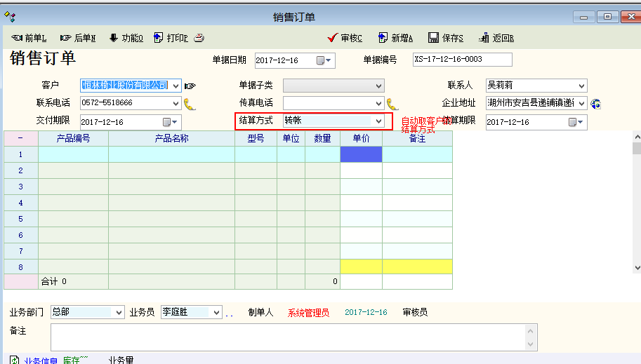 各位老师好: 在新建客户的时候,界面中是没有 结算方式这一个选项的;在销售订单创建的时候,是有一个结算方式选项可以选择的,里面的值也可以配置修改的。这样做也是有好处的,毕竟同一个客户每一笔订单不一定结算方式一样。 但是,我们现在的情况是,一个客户一个结算方式是固定的,比如现金或者转账;而且结算条件,日结、月结、20天结,也是固定的。所以,最好在客户资料新建的时候,就做一个选择,然后订单创建的时候,直接带入到销售订单的界面,不用在选择了,这样更方便。