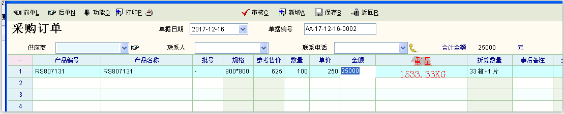 顶起, 折算这个功能只能单向换算, 很有问题。 1桶=18kg 只能输入10桶的数量, 才能出现180KG, 但实际出货是170KG, 哪怕是出现9.4桶, 那样所有人都会知道是10桶。 但输入10桶, 或者9.4桶, 对之际出货数量都是有误差的。 希望可以有双向单位折算。 谢谢