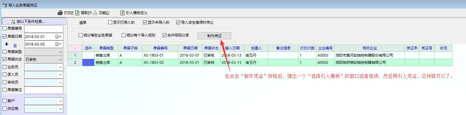 我们在设置进销存单据引入凭证模板时,往往一个进销存单据会设置多个模板,比如“销售出库”单据,我们可能设置一个模板用于应收和收入的凭证,另一个用于结转销售成本的凭证等。还有对于一些企业有特殊的需求,比如有些客户需要开票,有些不需要,在会计科目里应收账款需要设置“开票”和“不开票”两个明细科目,相应的有可能会设置两个引入模板(由于水平有限,自己尝试过用脚本,没折腾成功),但是引入凭证时没有选择模板的选项,凭证是一次生成的,所以就达不到预期的效果。因此希望在引入凭证时可以增加一个选择引入模板的选项,这样就可以有针对性地进行引入了。
