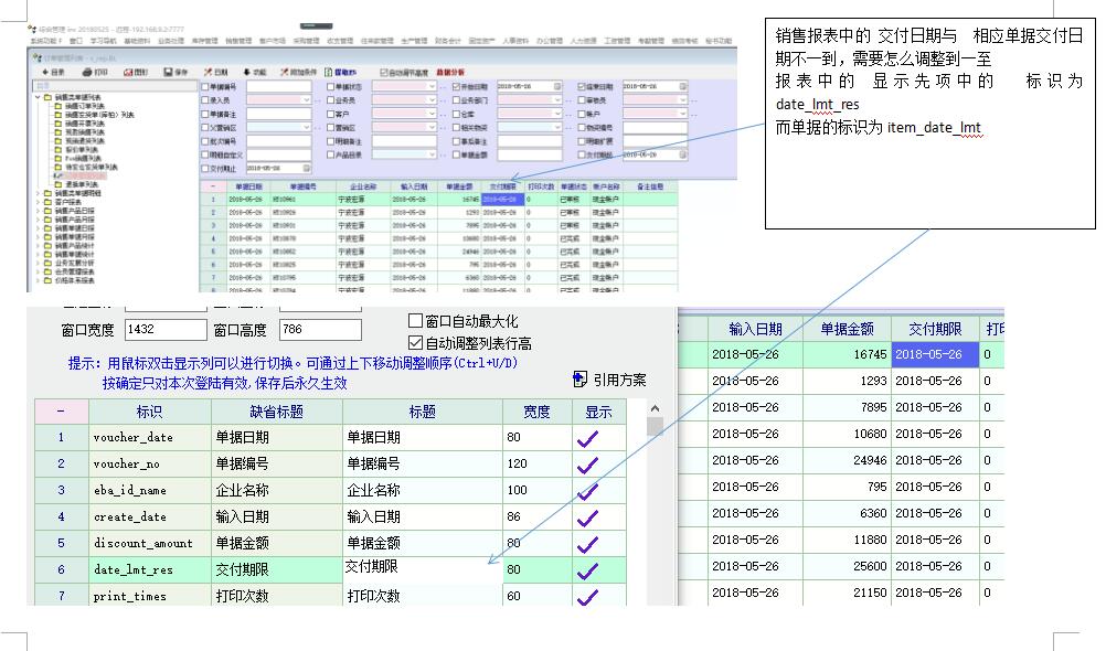 »销售报表 列表中交付期限与单据 交付期限不一至