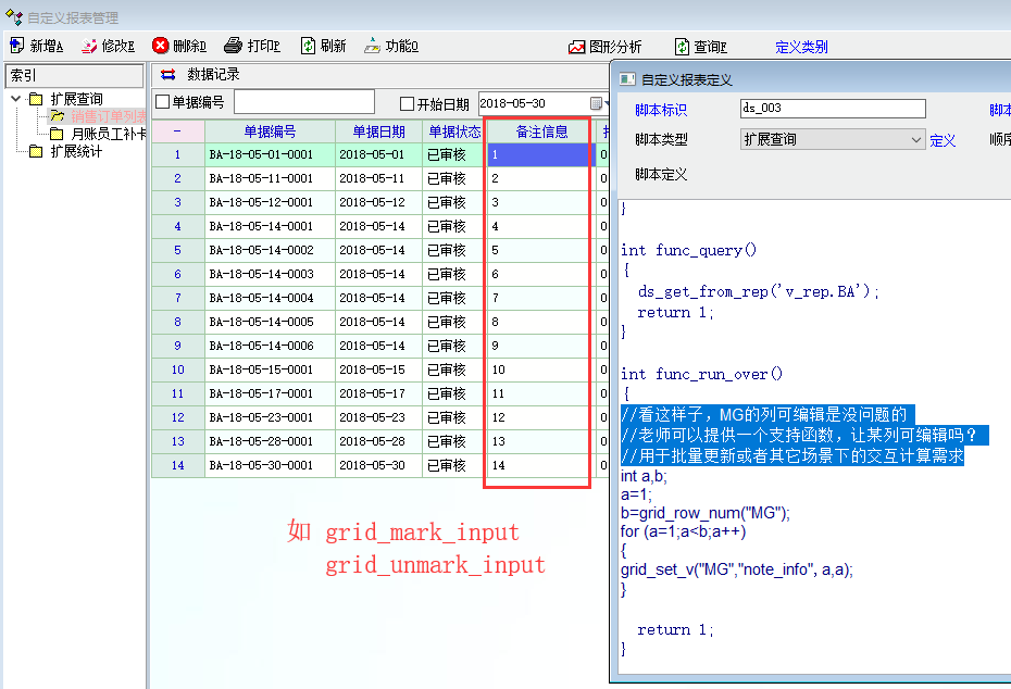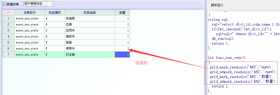 grid_mark_readonly SS I 标记一个列只能读 表格的名称,列名 grid_unmark_readonly SS I 设置一个列可以写 表格的名称,列名 试试可以用不