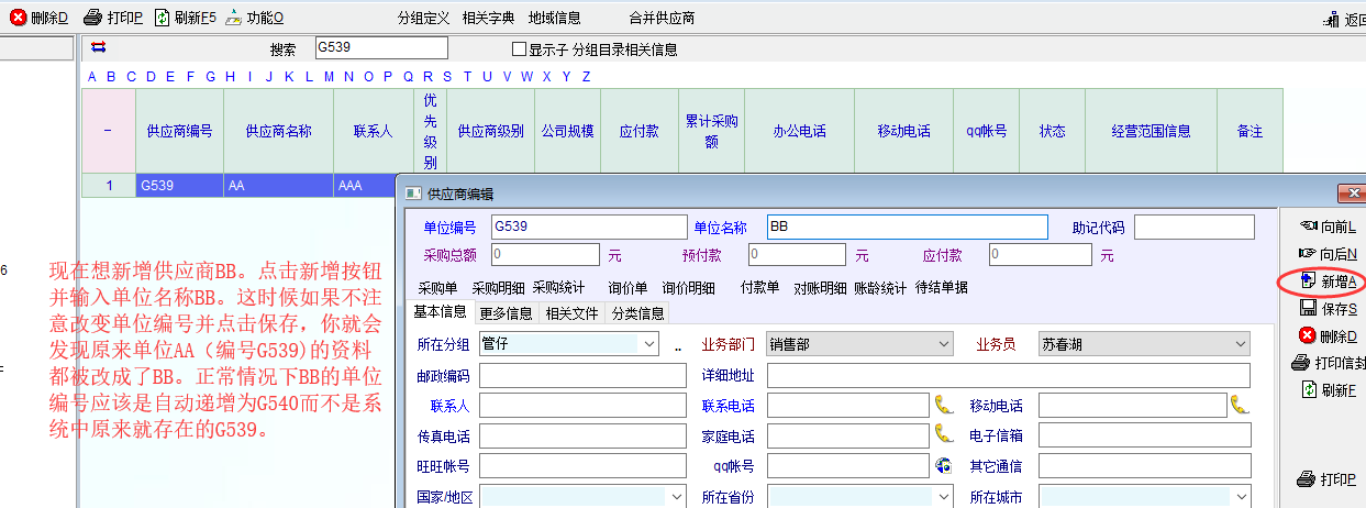 以前好像没有这个问题,最近原来的一些供应商资料莫名其妙的不见了,而新增的供应商里面就莫名其妙的会有原来的供应商的一些单据。经过仔细分析对比,发现问题在于新增供应商时系统不会自动提供新的供应商编号,而是采用原来已经存在了的供应商编号(系统也没有任何提示),并覆盖了原来的供应商资料。像我们系统中原来就存在编号为G539的供应商(G540-G739编号也有),现在新增供应商时,系统每次自动添加的编号都是G539,除非是手动更改,也不知道是什么原因。请问这个是系统的BUG还是我们的参数设置有问题?
