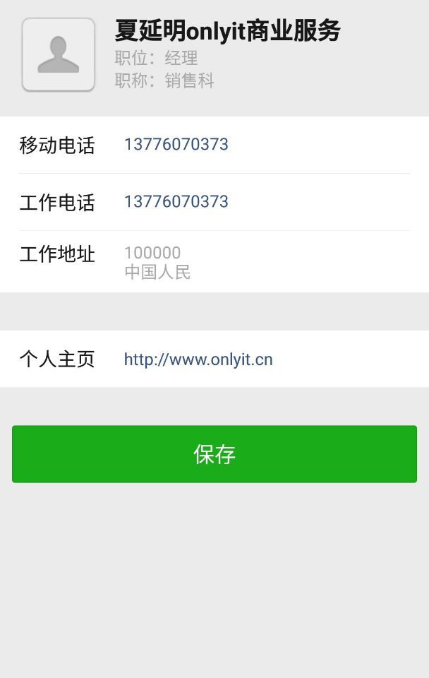 1.客户卡片模块里增加一个二维码定义 2.把脚本写入 3.在微信里扫描旁边的二维码,保存到手机联系人信息。