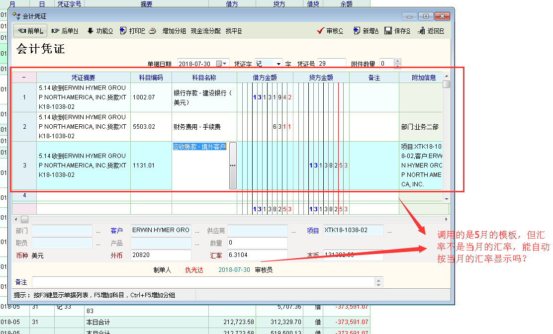 老师,调用凭证模板时,汇率不会自动取当月,这样每次调动用都得修改,能理自动更新汇率,谢谢!