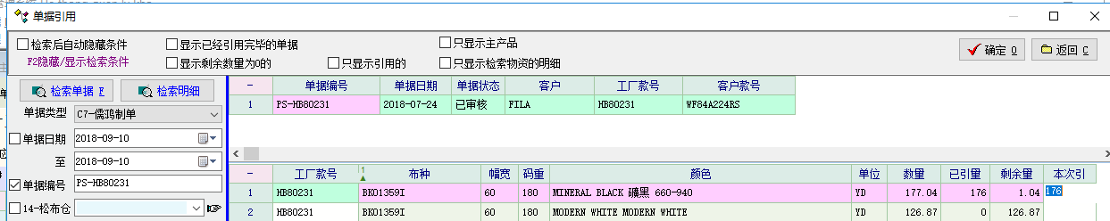 孟老师, 服装行业启用行业属性1,2.3.在实际操作中发现引用上级单据明细后, 在单据引用界面显示的已引用数量是没有对应行业属性1(颜色)的, 例如我8月24日的单据引用行业属性1(颜色)MODERN WHITE :176YD,在8月31日的单据引用界面显示的已引用数量是行业属性1(颜色):MINERAL BLACK 礦黑 660-940:176YD, 这个问题希望老师能帮忙解决,谢谢! 另外在单据的执行情况界面的显示定制里面也看不到行业属性项目.