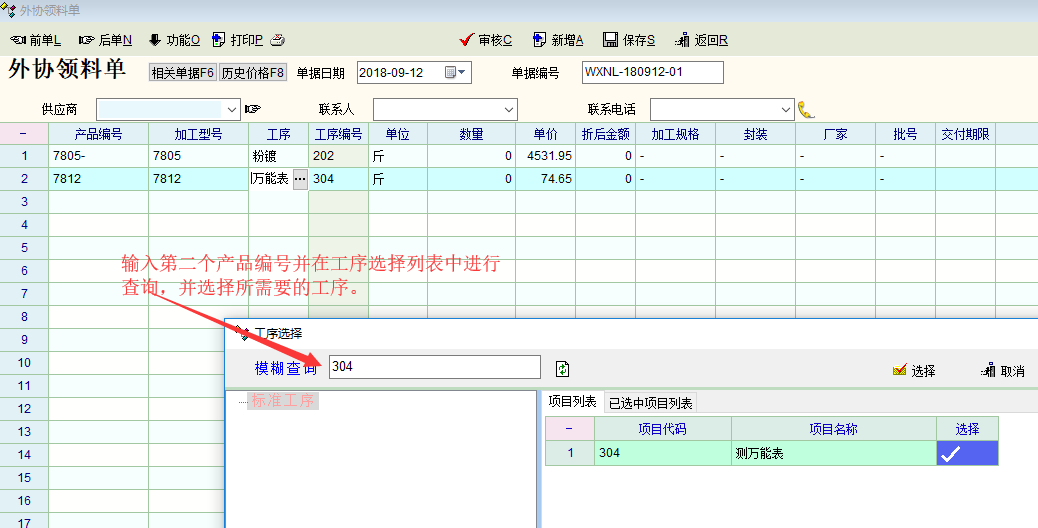 在生产单据(以外协领料单为例)中输入工序时,系统会自动弹出工序选择列表而不是直接输入所要输入的工序,效率太低。建议当输入的工序是正确(与工序列表中项目代码或项目名称完全一致)时直接在单元格中输入而不是弹出工序列表进行选择,就像输入产品编码一样。