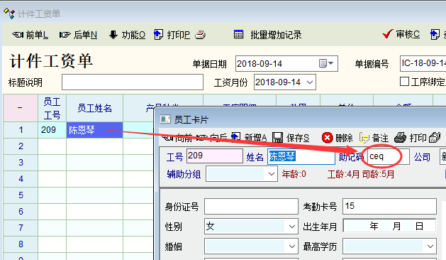 员工工号难以记住,直接输入名字效率又太低,建议输入员工姓名时支持助记码输入以提高输入效率。