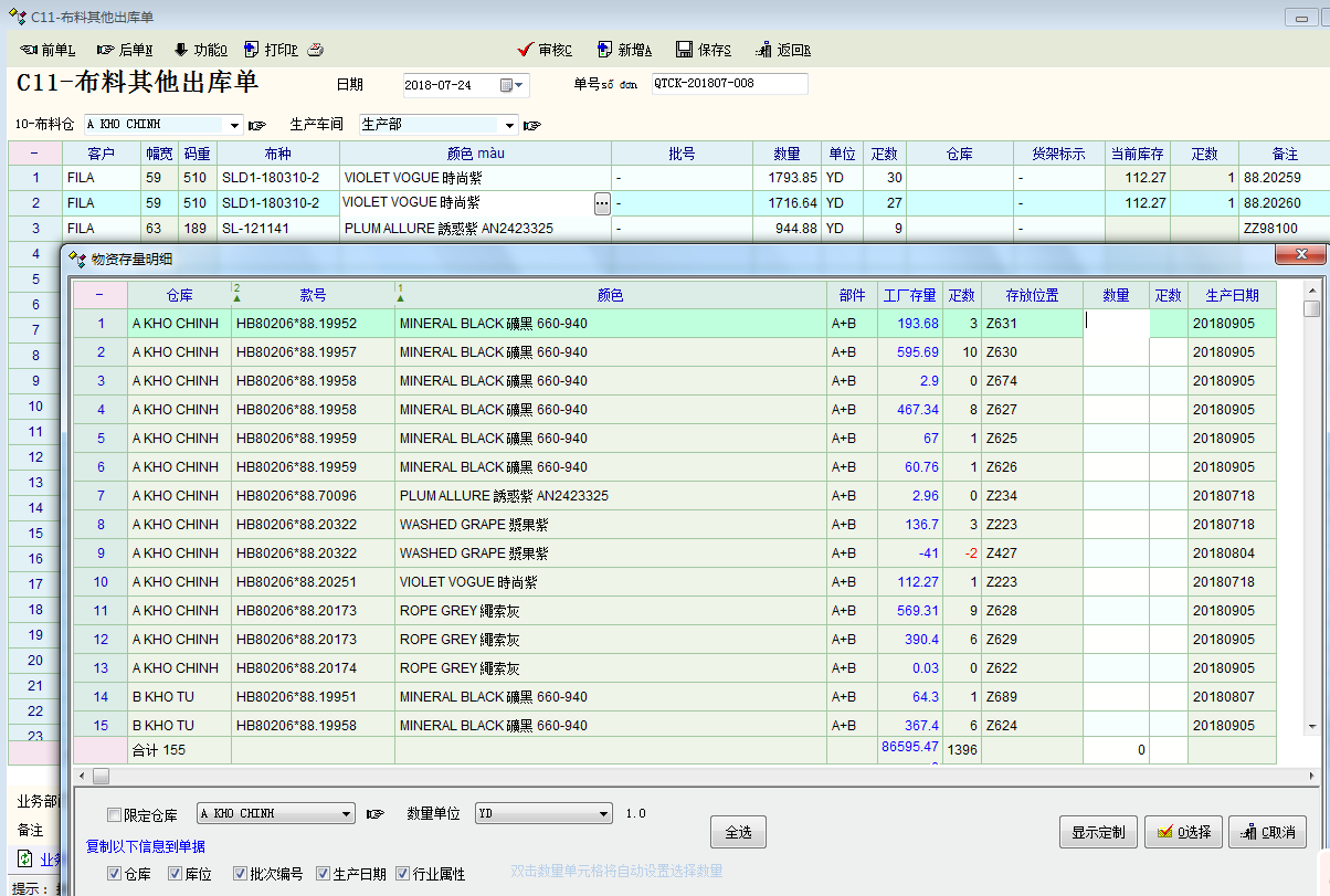 孟老师, 因为服装行业有启用行业属性, 布料出库都是需要根据颜色和缸号来出库的, 目前在出入库单据的批次选择界面只有限定仓库功能来过滤数据, 所以同一个料号(布种)的批次选择界面会有很多颜色, 每次选择都需要通过颜色排序后逐行查找批次,制单效率很低, 所以希望能在:单据-选择批次-的界面增加限定行业属性功能(我主要需要使用行业属性1: 颜色),这样我就可以行业属性1:颜色来过滤批次数据.