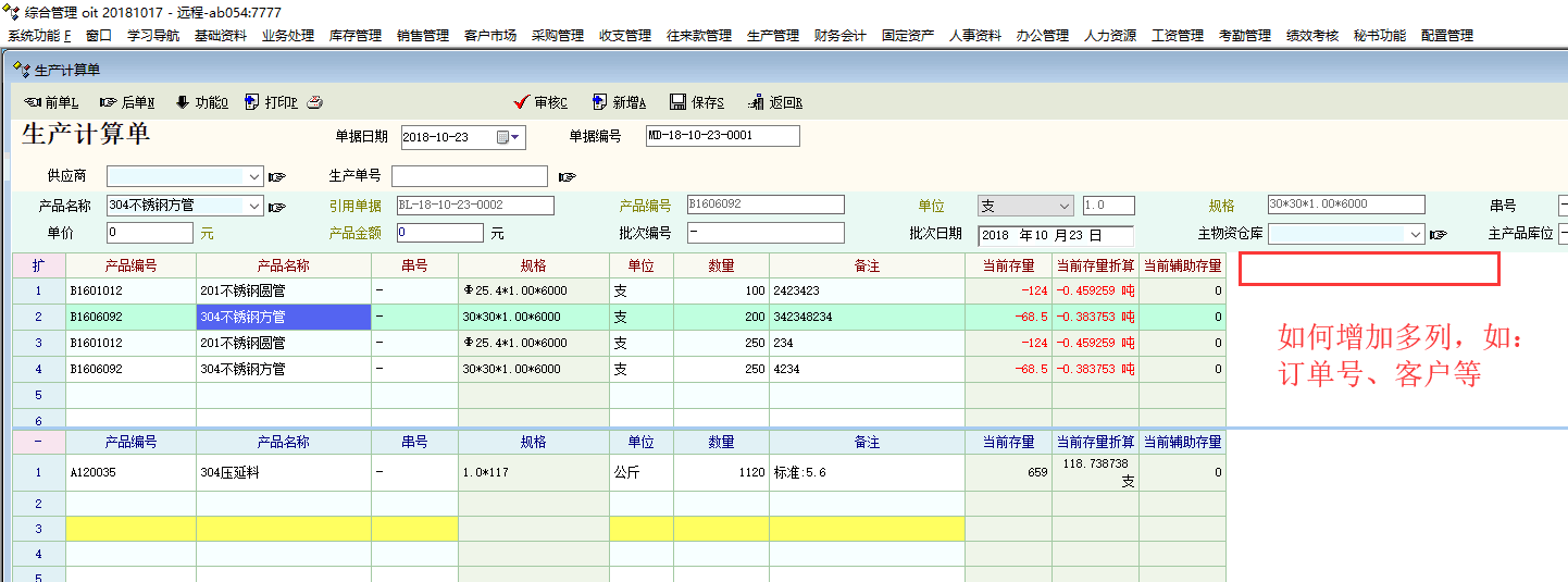 可以增加,用脚本或是 功能下的单据扩展中的明细表格扩展
