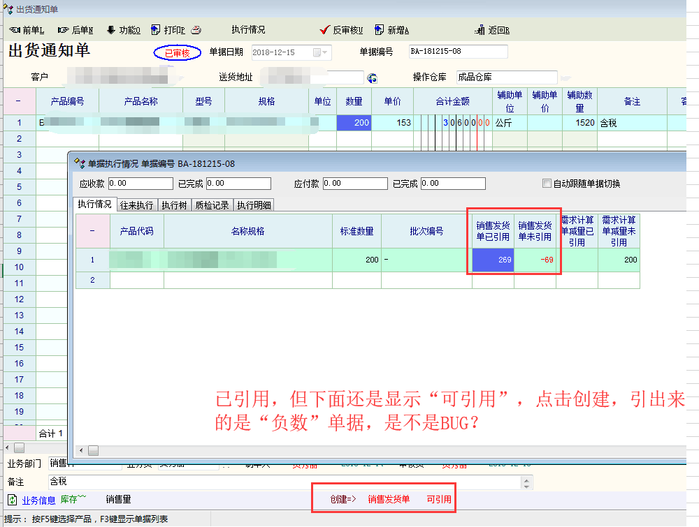 引用的数量超过上级单据数量,还是显示可引用状态,再来创建下级单据时,数量为负数,是什么问题?