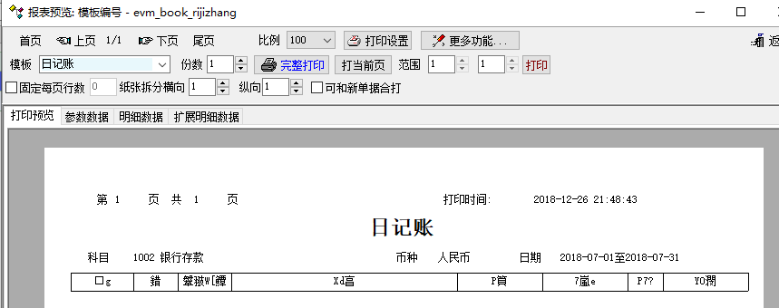 新版中帐簿查询中,不论是单科帐,还是序时帐,余额表,只要点击根据模板打印,顶栏就是乱码。试过作凭证报表中按模版打印就不出现这个问题,旧版的帐簿也不会出现这个问题。 另:关于余额方向问题,如果余额为0,余额方向应显示为平,打印也应该显示为平,而不是现在这样显示为借方。不知是不是没人重视这个问题,2017年已发了贴子,都没人理会,对于财务软件这么重要的问题,都一直没有解决。