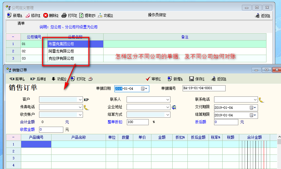 可以每张单据关联到公司里设定的哪家公司吗? 如果可以,则应该可以实现楼主的要求按公司的做账及统计应收就收款项