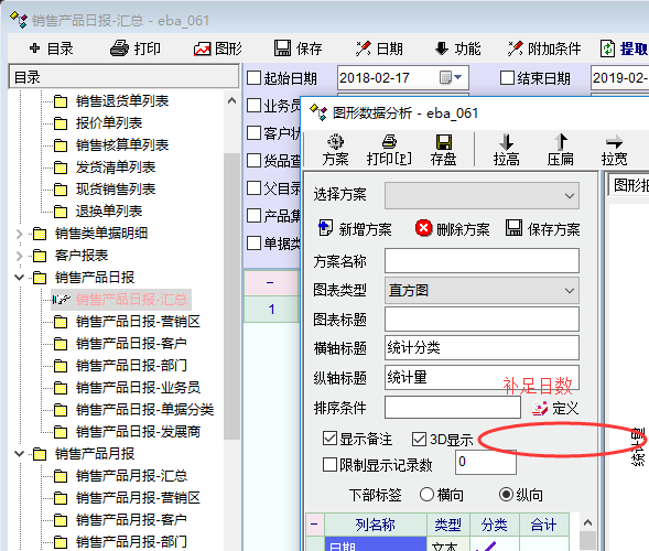 最新版本销售报表图形分析界面增加自动补足月份选项,但实际操作中并不起作用。