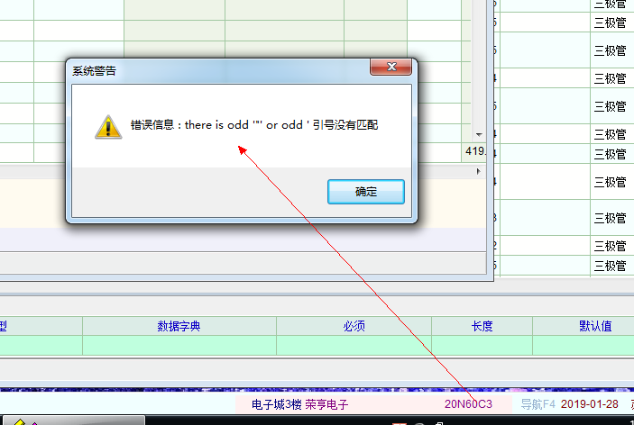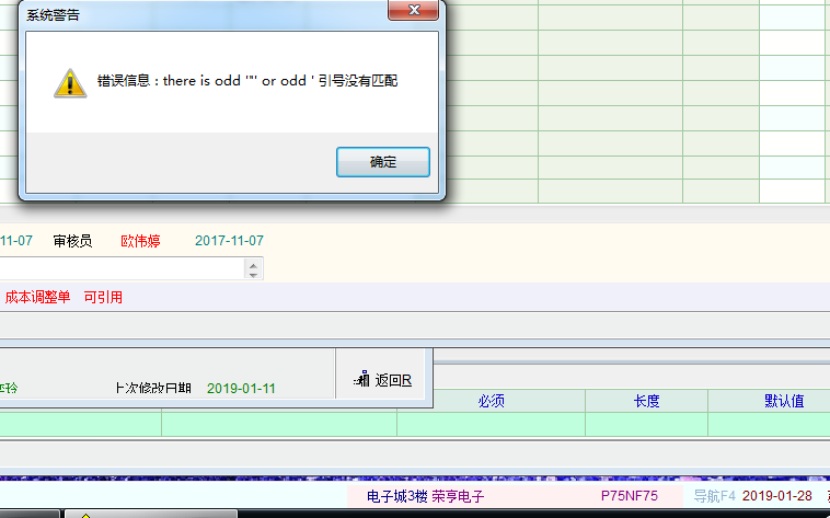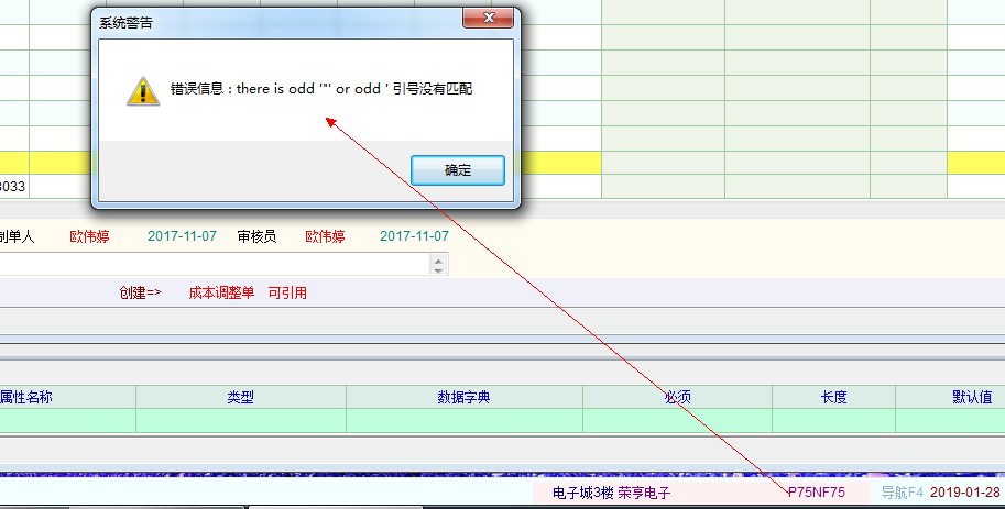 »1-28最新版本通过右下角的功能栏打开产品定义页面时弹出系统警告。
