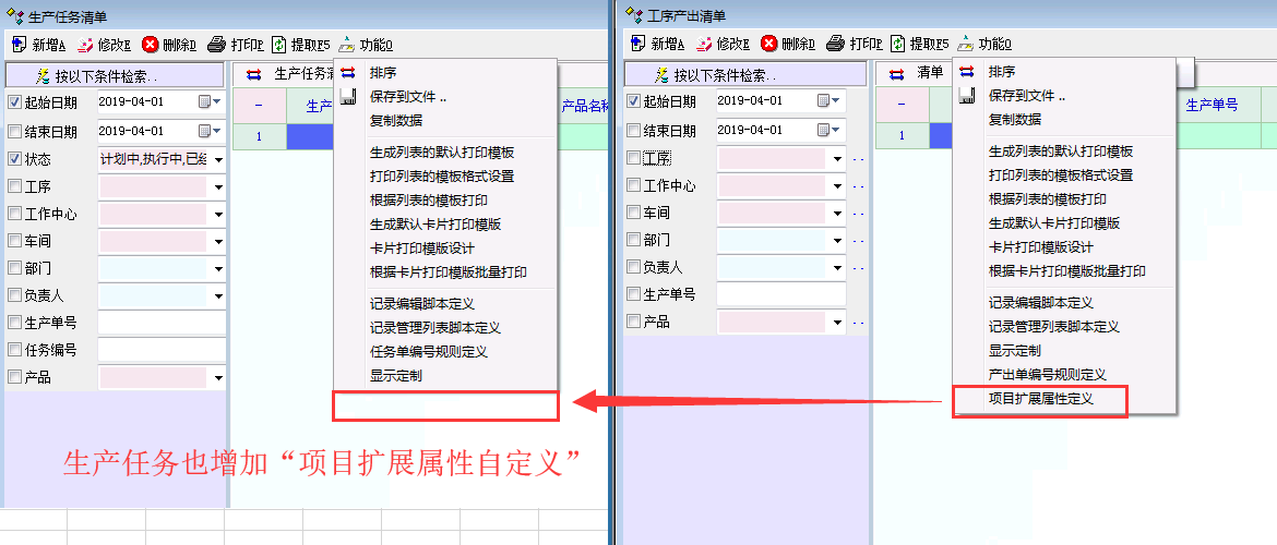 »请帮忙在生产任务(派工单)也增加项目扩展属性定义