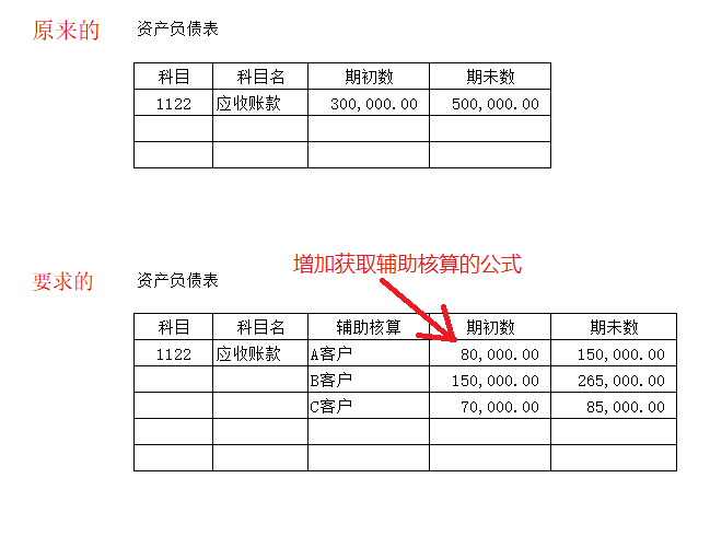 报告里取的是汇总数,直接从目前的公式取就可以了。 截图上还是没有体现出辅助核算的需求来。
