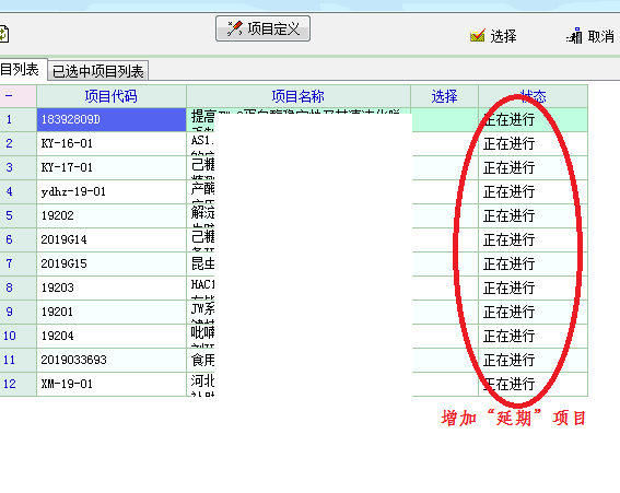 »建议在出库单、采购单等所有单据中,选择“相关项目”中,增加延期项目的选择项