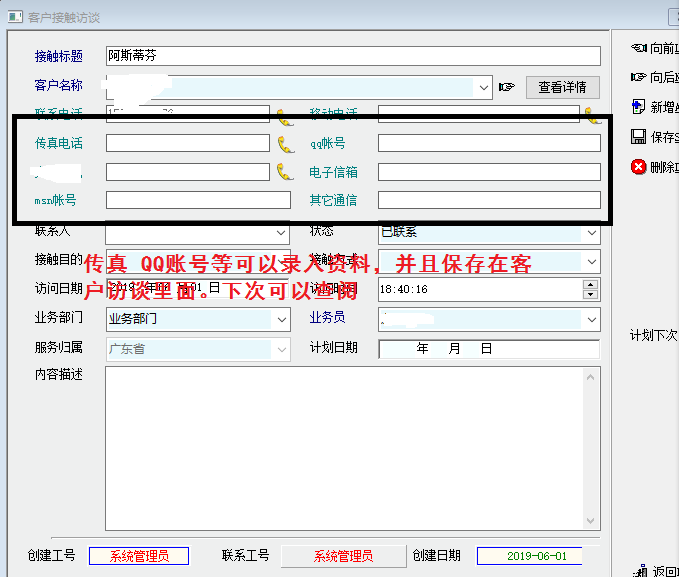 希望客户访谈对话框的电话,MSN 客户等地方可以人工录入数据。