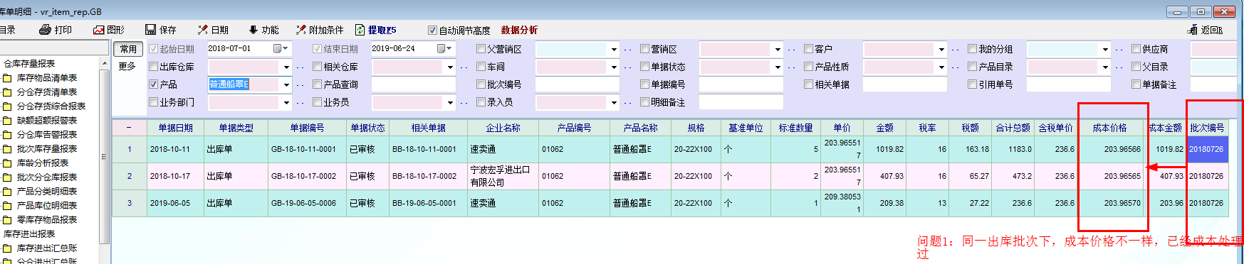 批次核算法下,问题一:同一出库批次不同的价格;问题二:出库批次与对应的入库批次价格不一样。如果只能上传一张图,请看回复图片