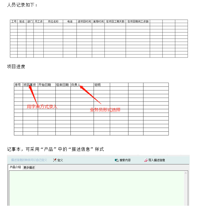 建议项目管理增加“人员记录”,项目“进度记录”,“项目记事本”功能