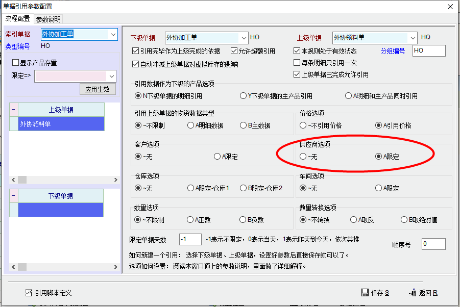 如图,业务流程中引用是限定供应商的,第一次引用时会限定供应商,但新增外协加工单并更换供应商后,再引用相关单据时,“单据引用“中的供应商还是限定为上一单的供应商,并不会自动切换为当前的外协加工单的供应商。